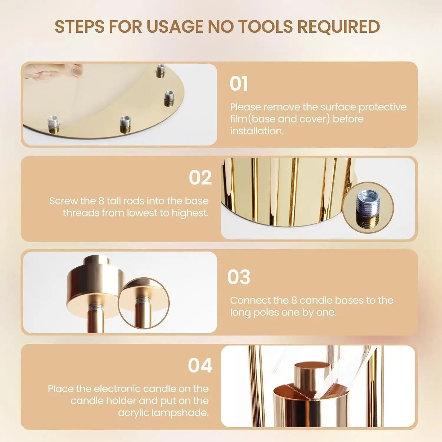 Elevate your events with commanding height and warm glow using this 4-piece, 46-inch metal floor candlestick set, designed to help you create lasting centerpiece moments for weddings, parties, and celebrations.